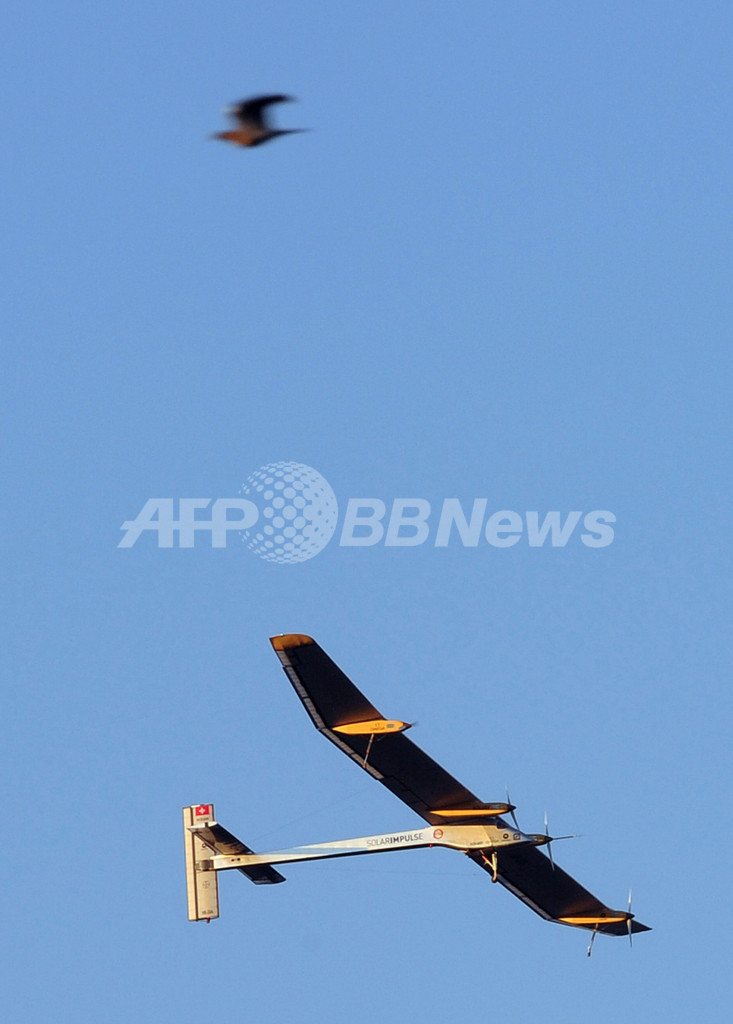 今回の大陸間飛行は、2014年に改良版の機体を使って予定されている世界一周飛行に向けた試験飛行として行われた。(c)AFP