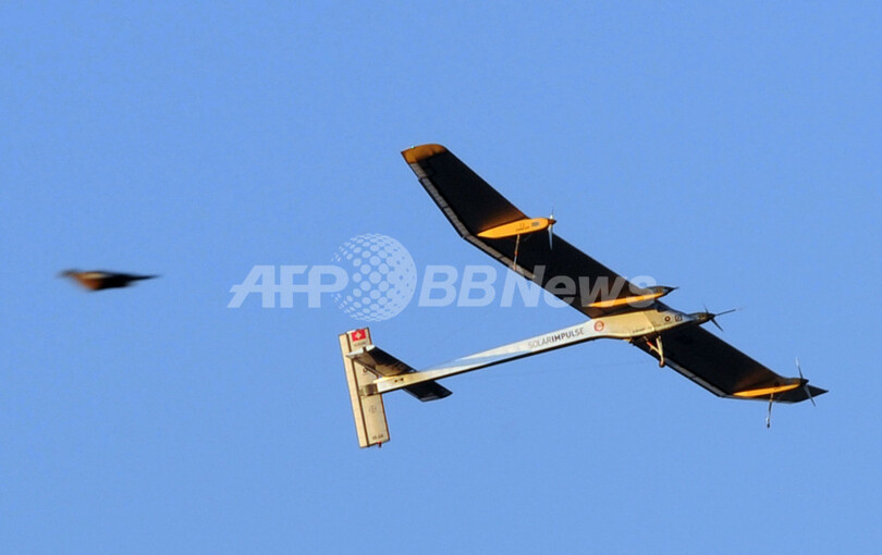 今回の大陸間飛行は、2014年に改良版の機体を使って予定されている世界一周飛行に向けた試験飛行として行われた。(c)AFP