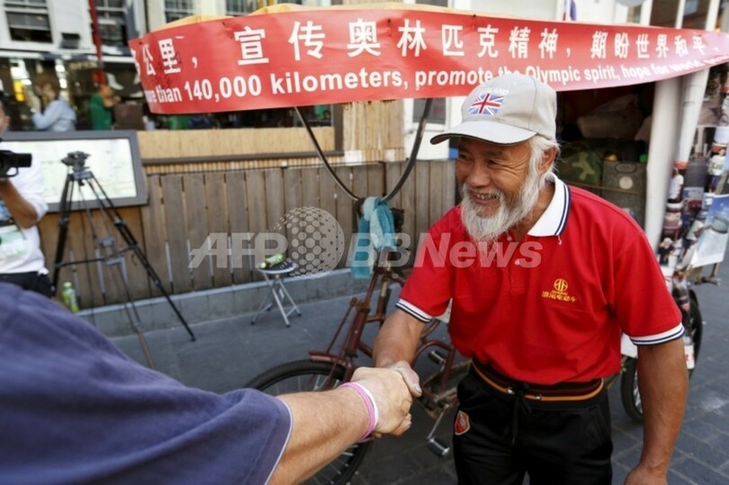 台湾からアジア、中東と、数多くの災害被災地や荒れた土地、紛争地帯を通ってきた。旅の目的は、平和でより良い世界の実現に貢献するという「五輪の精神を広めること」。陳さんは2008年の北京五輪の際にも、中国国内6万5000キロを横断して北京に到達した。(c)AFP