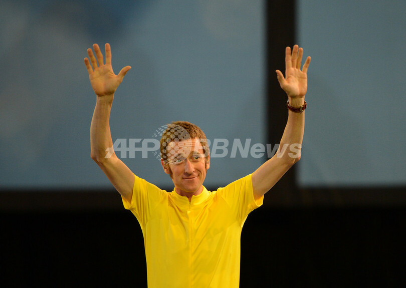 開会式に登場した2012ツール・ド・フランス(2012 Tour de France)の総合王者ブラドレー・ウイギンズ(Bradley Wiggins、2012年7月27日撮影)。(c)AFP/CHRISTOPHE SIMON