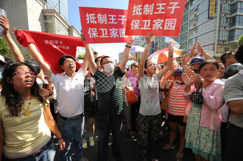 【7月28日 AFP】中国上海近郊の、江蘇(Jiangsu)省南通(Nantong)市啓東(Qidong)で28日、日本の製紙会社、王子製紙(Oji Paper)の工場から出る排水を海に流す計画に対し、数万人が参加する大規模なデモが行われた。