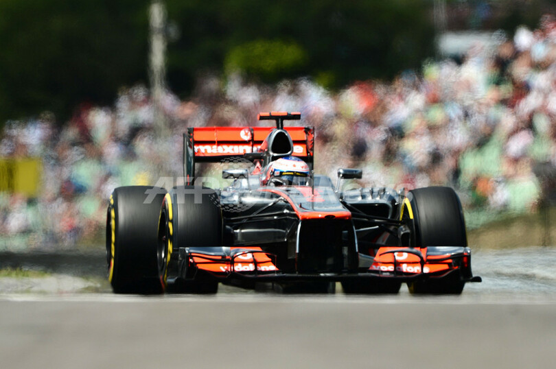 予選4番手につけたマクラーレン・メルセデスのジェンソン・バトン(Jenson Button、2012年7月28日撮影)。(c)AFP/DIMITAR DILKOFF