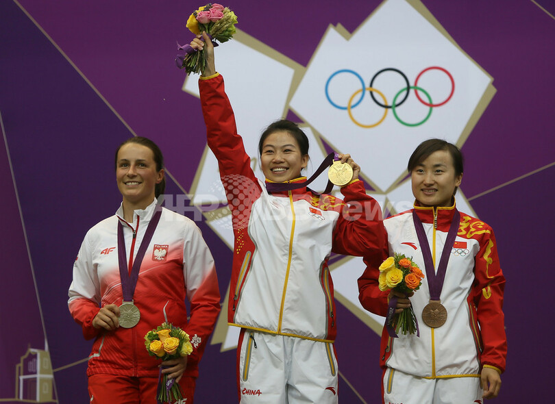 同種目の銀メダルはポーランドのシルビア・ボガツカ(Sylwia Bogacka)、銅メダルは中国の喩丹(Yu Dan)が獲得した。(c)AFP