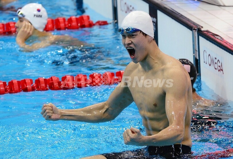 【7月29日 AFP】(写真追加)ロンドン五輪は28日、アクアティクス・センター(Aquatics Centre)で競泳男子400メートル自由形決勝が行われ、中国の孫楊(Yang Sun、ソン・ヨウ)が3分40秒14で金メダルを獲得した。