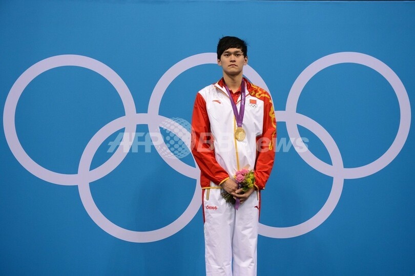 表彰式に臨む孫楊(2012年7月28日撮影)。(c)AFP/MARTIN BUREAU