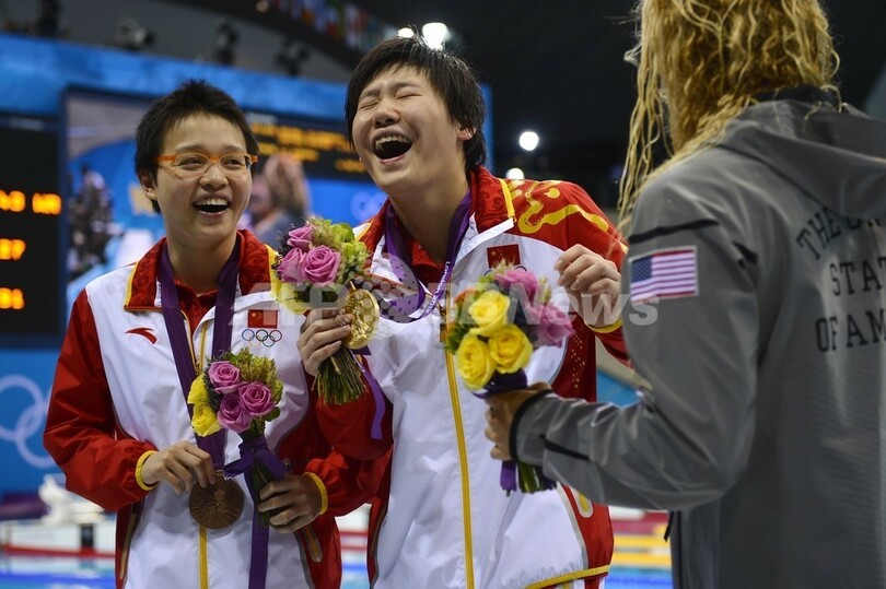 【7月29日 AFP】(写真追加)ロンドン五輪は28日、アクアティクス・センター(Aquatics Centre)で競泳女子400メートル個人メドレー決勝が行われ、中国の葉詩文(Shiwen Ye、ヨウ・シブン)が世界新記録の4分28秒43を記録し、金メダルを獲得した。