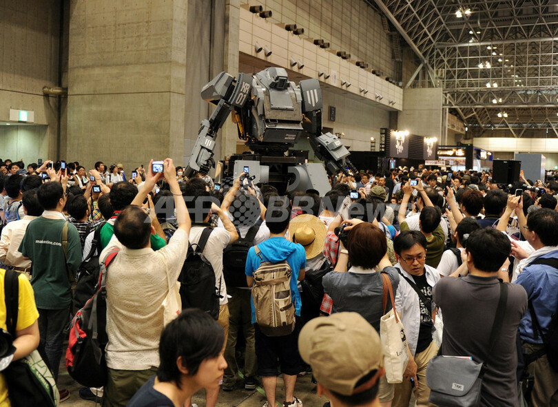 【7月29日 AFP】日本のエレクトロニスメーカー、水道橋重工(Suidobashi Heavy Industry)が29日、千葉県で開催されたワンダーフェスティバル(Wonder Festival)で、人が乗って操縦することができるロボット「クラタス(Kuratas)」を披露した。