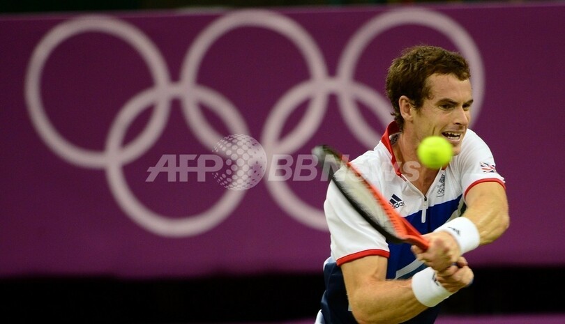 リターンを打つアンディ・マレー(2012年7月29日撮影)。(c)AFP/Martin Bernetti