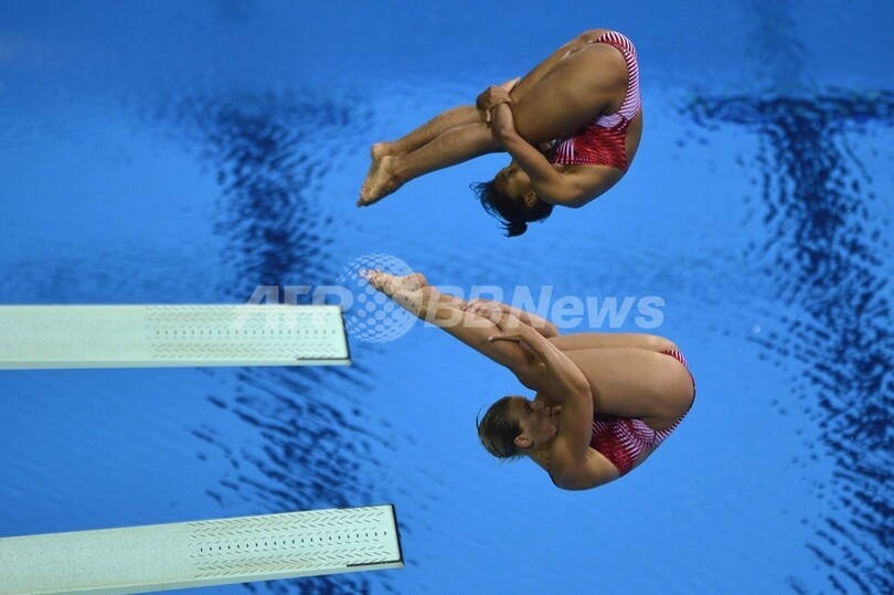 【7月30日 AFP】ロンドン五輪は29日、アクアティクス・センター (Aquatics Centre)で飛び込み女子3メートルシンクロナイズドダイビング決勝が行われ、中国の呉敏霞(Wu Minxia)/何姿(He Zi)組が346.20点で優勝し、金メダルを獲得した。