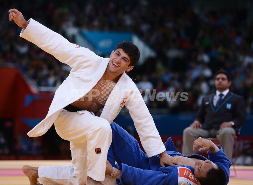 【7月30日 AFP】(写真追加)ロンドン五輪は29日、エクセル(ExCeL London)で柔道男子66キロ級3位決定戦が行われ、日本の海老沼匡(Masashi Ebinuma)は、ポーランドのパベル・ザグロドニク(Pawel Zagrodnik)に一本勝ちし、銅メダルを獲得した。(c)AFP