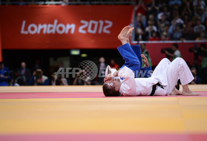 【7月30日 AFP】(写真追加)ロンドン五輪は29日、エクセル(ExCeL London)で柔道男子66キロ級3位決定戦が行われ、日本の海老沼匡(Masashi Ebinuma)は、ポーランドのパベル・ザグロドニク(Pawel Zagrodnik)に一本勝ちし、銅メダルを獲得した。(c)AFP