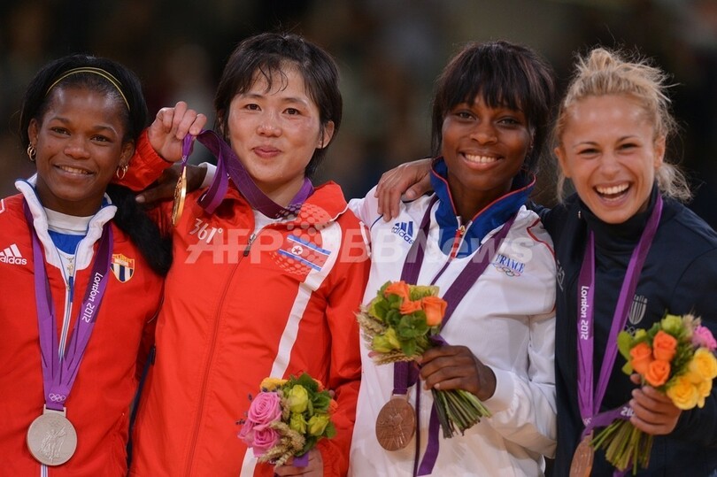 【7月30日 AFP】(写真追加)ロンドン五輪は29日、エクセル(ExCeL London)で柔道女子52キロ級決勝が行われ、北朝鮮のアン・グムエ(An Kum-Ae)がキューバのヤネト・ベルモイ(Yanet Bermoy)を下し、金メダルを獲得した。