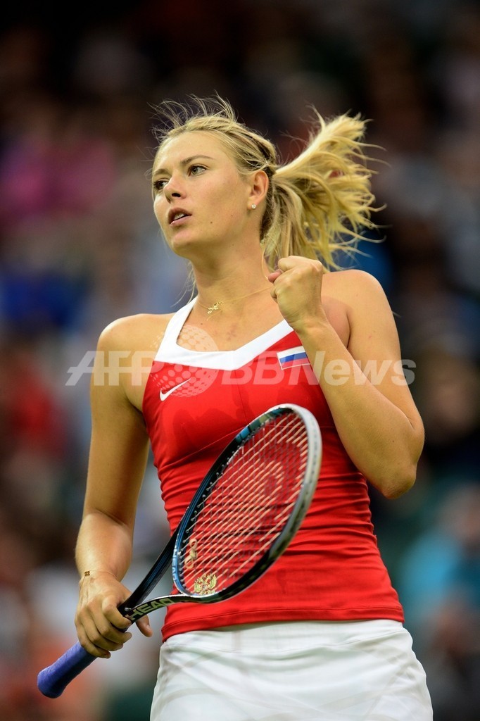 勝利を喜ぶマリア・シャラポワ(2012年7月29日撮影)。(c)AFP/Martin Bernetti