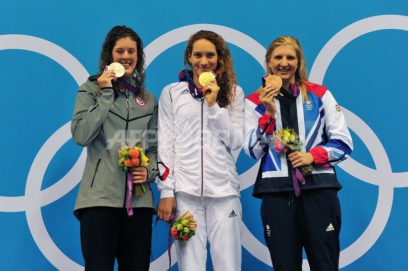4分1秒77で米国のアリソン・シュミット(Allison Schmitt)が銀メダル、4分3秒01で英国のレベッカ・アドリントン(Rebecca Adlington)が銅メダルを獲得した。(c)AFP