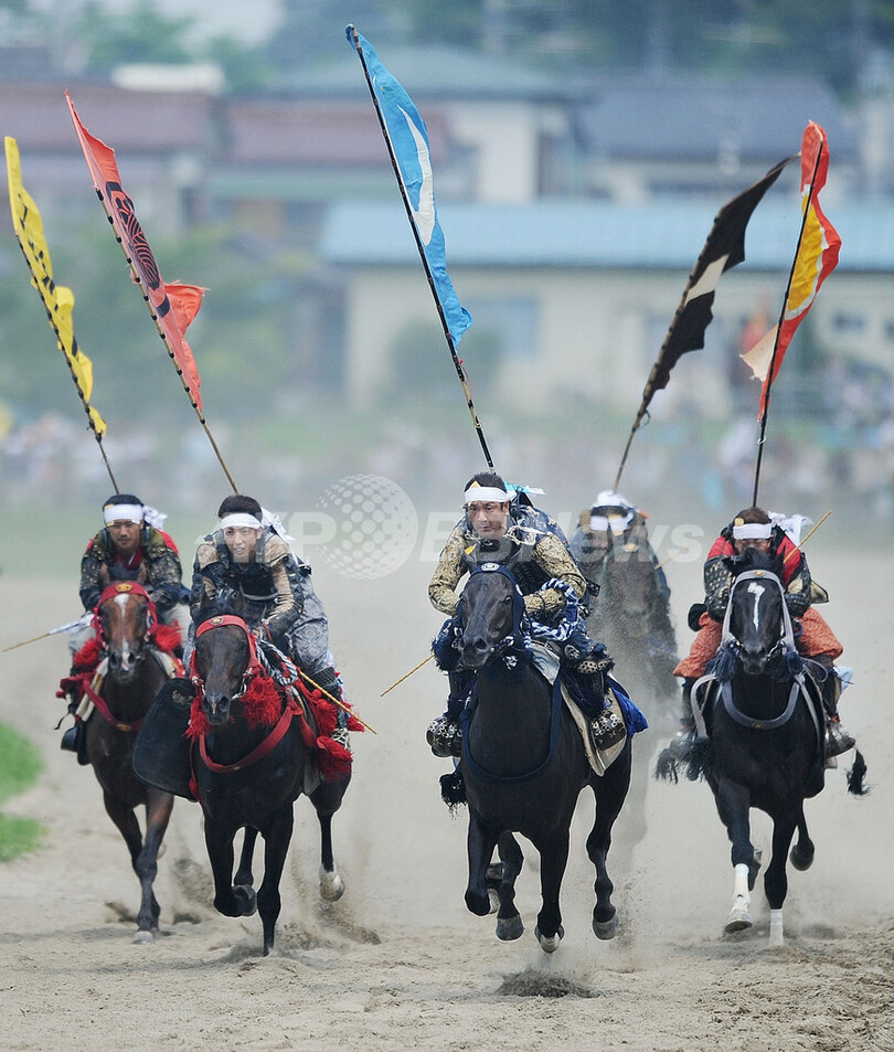 ニュース ライフ 福島の相馬野馬追、神旗争奪戦と甲冑競馬2年ぶり復活 2012年7月30日 12:54 発信地:南相馬市/福島 [ アジア・オセアニア 福島 ] このニュースをシェア ‹ › ❮ 26/26 ❯ 福島県の伝統祭り「相馬野馬追」は29日に2日目を迎え、東日本大震災の影響で前年は見送られていた主行事の甲冑(かっちゅう)競馬と神旗争奪戦が南相馬市で行われた。1000年にわたり続く祭りにはこの日、数万人が訪れ、約400騎が繰り広げる勇壮な伝統行事を楽しんだ。写真は甲冑競馬で競り合う騎馬武者たち(2012年7月29日撮影)。(c)AFP/Toru YAMANAKA 画像作成中 ! 【7月30日 AFP】福島県の伝統祭り「相馬野馬追」は29日に2日目を迎え、東日本大震災の影響で前年は見送られていた主行事の甲冑(かっちゅう)競馬と神旗争奪戦が南相馬市で行われた。1000年にわたり続く祭りにはこの日、数万人が訪れ、約400騎が繰り広げる勇壮な伝統行事を楽しんだ。(c)AFP ライフ 一覧へ> メディア・報道関係・法人の方向け 写真・動画 購入のお問合せ>