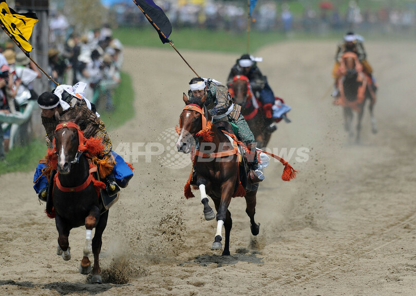 ニュース ライフ 福島の相馬野馬追、神旗争奪戦と甲冑競馬2年ぶり復活 2012年7月30日 12:54 発信地:南相馬市/福島 [ アジア・オセアニア 福島 ] このニュースをシェア ‹ › ❮ 25/26 ❯ 福島県の伝統祭り「相馬野馬追」は29日に2日目を迎え、東日本大震災の影響で前年は見送られていた主行事の甲冑(かっちゅう)競馬と神旗争奪戦が南相馬市で行われた。1000年にわたり続く祭りにはこの日、数万人が訪れ、約400騎が繰り広げる勇壮な伝統行事を楽しんだ。写真は甲冑競馬で競り合う騎馬武者たち(2012年7月29日撮影)。(c)AFP/Toru YAMANAKA 画像作成中 ! 【7月30日 AFP】福島県の伝統祭り「相馬野馬追」は29日に2日目を迎え、東日本大震災の影響で前年は見送られていた主行事の甲冑(かっちゅう)競馬と神旗争奪戦が南相馬市で行われた。1000年にわたり続く祭りにはこの日、数万人が訪れ、約400騎が繰り広げる勇壮な伝統行事を楽しんだ。(c)AFP ライフ 一覧へ> メディア・報道関係・法人の方向け 写真・動画 購入のお問合せ>