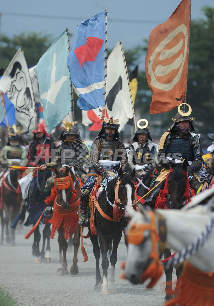 ニュース ライフ 福島の相馬野馬追、神旗争奪戦と甲冑競馬2年ぶり復活 2012年7月30日 12:54 発信地:南相馬市/福島 [ アジア・オセアニア 福島 ] このニュースをシェア ‹ › ❮ 16/26 ❯ 福島県の伝統祭り「相馬野馬追」は29日に2日目を迎え、東日本大震災の影響で前年は見送られていた主行事の甲冑(かっちゅう)競馬と神旗争奪戦が南相馬市で行われた。1000年にわたり続く祭りにはこの日、数万人が訪れ、約400騎が繰り広げる勇壮な伝統行事を楽しんだ。写真は行進する騎馬武者たち(2012年7月29日撮影)。(c)AFP/Toru YAMANAKA 画像作成中 ! 【7月30日 AFP】福島県の伝統祭り「相馬野馬追」は29日に2日目を迎え、東日本大震災の影響で前年は見送られていた主行事の甲冑(かっちゅう)競馬と神旗争奪戦が南相馬市で行われた。1000年にわたり続く祭りにはこの日、数万人が訪れ、約400騎が繰り広げる勇壮な伝統行事を楽しんだ。(c)AFP ライフ 一覧へ> メディア・報道関係・法人の方向け 写真・動画 購入のお問合せ>