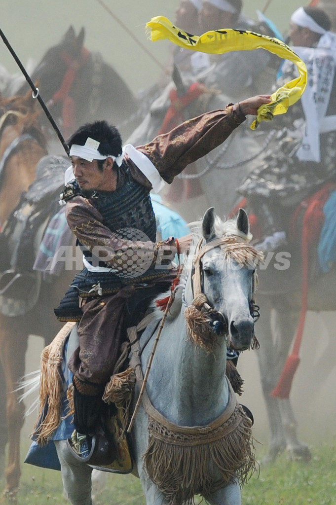 【7月30日 AFP】福島県の伝統祭り「相馬野馬追」は29日に2日目を迎え、東日本大震災の影響で前年は見送られていた主行事の甲冑(かっちゅう)競馬と神旗争奪戦が南相馬市で行われた。1000年にわたり続く祭りにはこの日、数万人が訪れ、約400騎が繰り広げる勇壮な伝統行事を楽しんだ。(c)AFP