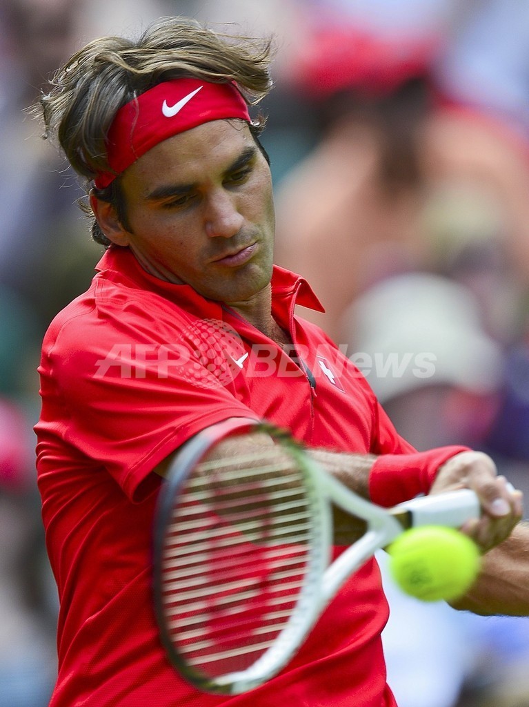 コロンビアのアレハンドロ・ファリャ(Alejandro Falla)に辛勝した1回戦後、スイス代表としてのプレッシャーを感じていたことを認めたフェデラーだが、センターコートで行われた2回戦では世界ランク1位の実力を見せつけ、わずか58分でストレート勝ちを収めた。(c)AFP
