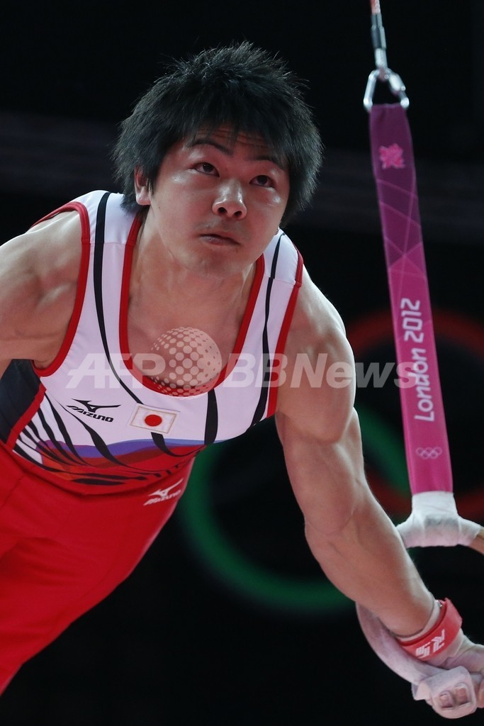 つり輪に臨む日本の山室光史(Koji Yamamuro、2012年7月30日撮影)。(c)AFP/THOMAS COEX