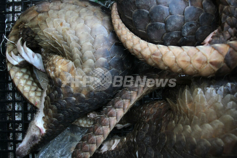 センザンコウやセンザンコウを使った製品の取引は違法だが、主に中国やベトナムで肉は食品として、うろこを粉にしたものは医薬品の原料として珍重されている。センザンコウは哺乳類としては唯一うろこがある。(c)AFP