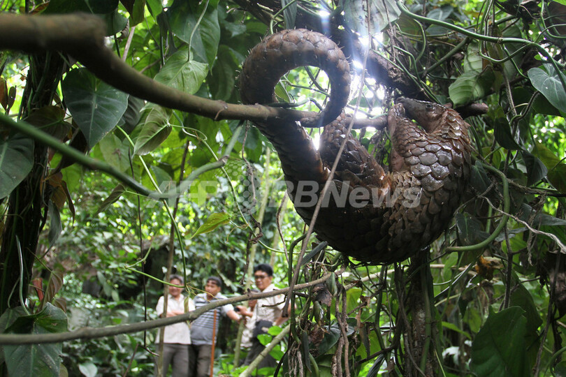 センザンコウやセンザンコウを使った製品の取引は違法だが、主に中国やベトナムで肉は食品として、うろこを粉にしたものは医薬品の原料として珍重されている。センザンコウは哺乳類としては唯一うろこがある。(c)AFP