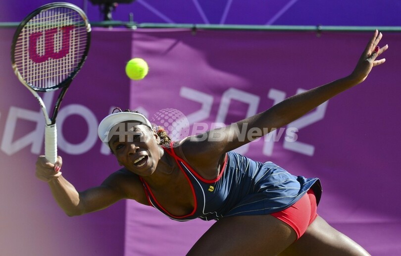 一方、シングルス敗退に終わったヴィーナスは、妹のセレーナ・ウィリアムス(Serena Williams)とのダブルスで五輪連覇のチャンスを残しており、連覇を達成すれば自身4個目の金メダル獲得となる。(c)AFP