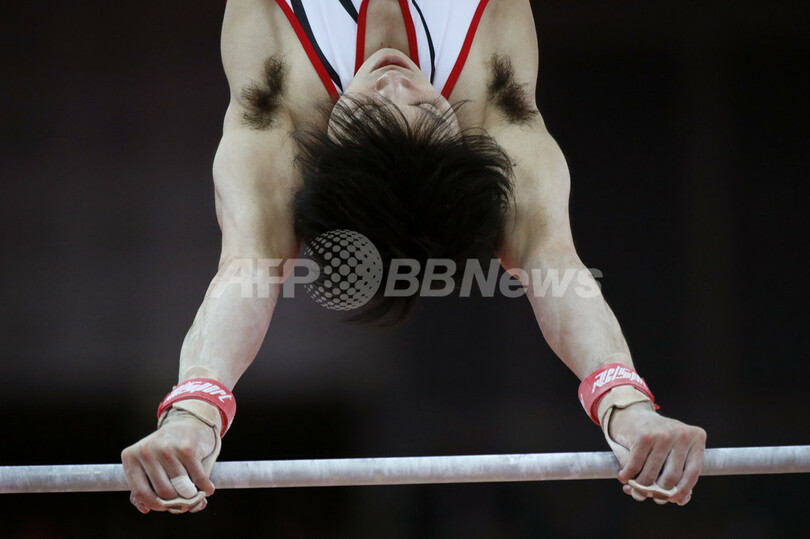 予選で9番手に終わり、団体決勝では金メダル獲得はかなわなかった内村だったが、個人種目別の決勝を控えてますます力を強めている。(c)AFP/Tom Williams