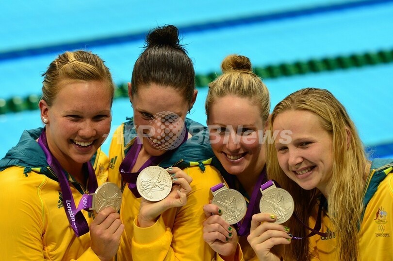 【8月2日 AFP】ロンドン五輪は1日、アクアティクス・センター(Aquatics Centre)で競泳女子4×200メートルリレー決勝が行われ、米国が7分42秒92の五輪新記録で金メダルを獲得した。