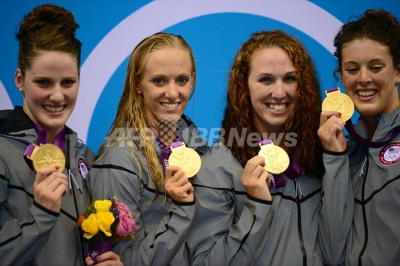 【8月2日 AFP】ロンドン五輪は1日、アクアティクス・センター(Aquatics Centre)で競泳女子4×200メートルリレー決勝が行われ、米国が7分42秒92の五輪新記録で金メダルを獲得した。