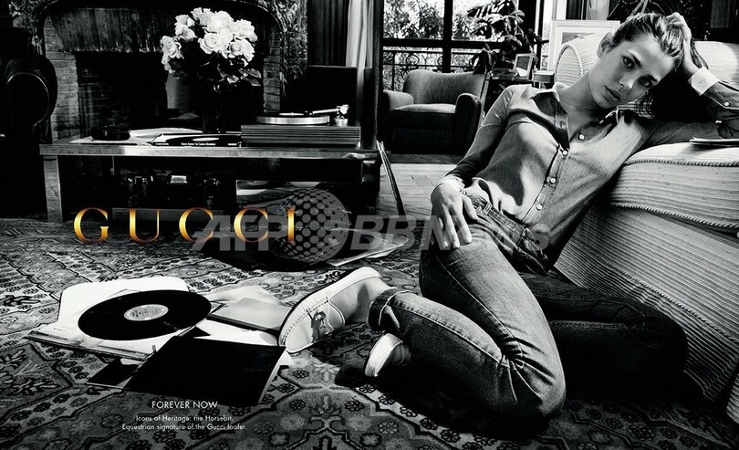 秋から展開する第2弾キャンペーンでは、イネズ・ヴァン・ラムズウィールド(Inez van Lamsweerde)とヴィヌード・マタディン(Vinoodh Matadin)が撮影を担当。「グッチ」のアイコンである“ホースビット”をあしらったローファーをはいたシャルロットの姿を、モノクロームの世界で表現した。(c)Relaxnews/AFPBB News