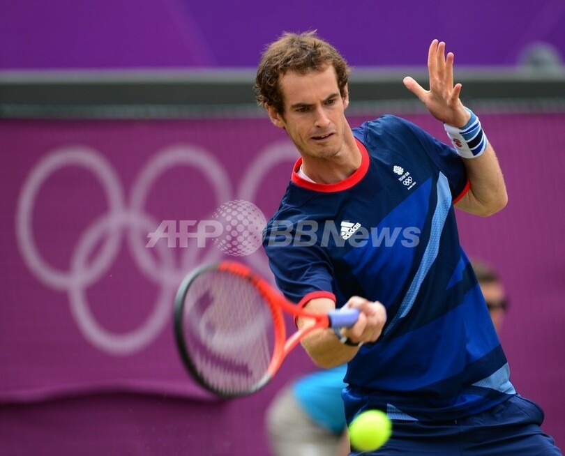 リターンを打つアンディ・マレー(2012年8月2日撮影)。(c)AFP/Martin Bernetti