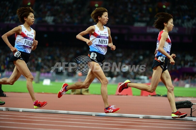 レースに臨む日本の(右から)吉川美香(Mika Yoshikawa)、新谷仁美(Hitomi Niiya)、福士加代子(Kayoko Fukushi、2012年8月3日撮影)。(c)AFP/OLIVIER MORIN