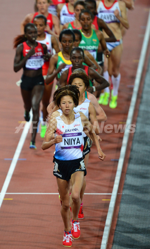 先頭でレースを引っ張る日本の新谷仁美(Hitomi Niiya、2012年8月3日撮影)。(c)AFP/GABRIEL BOUYS