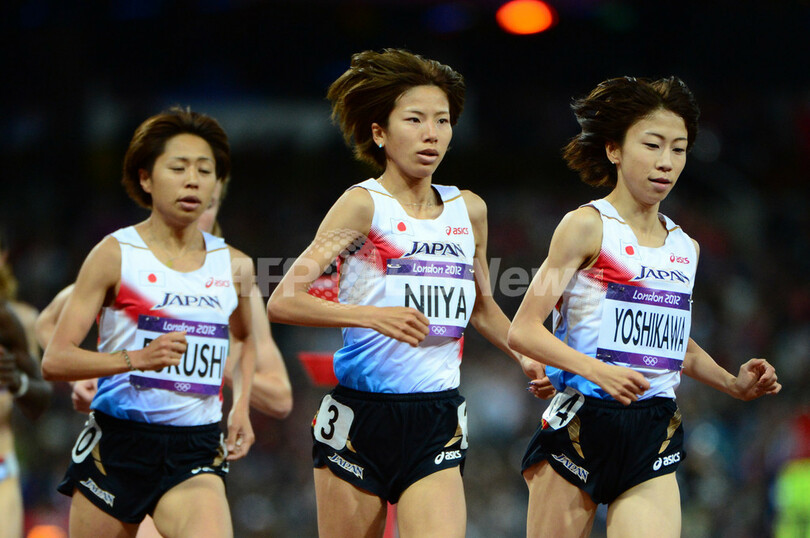 レースに臨む日本の(右から)吉川美香(Mika Yoshikawa)、新谷仁美(Hitomi Niiya)、福士加代子(Kayoko Fukushi、2012年8月3日撮影)。(c)AFP/OLIVIER MORIN