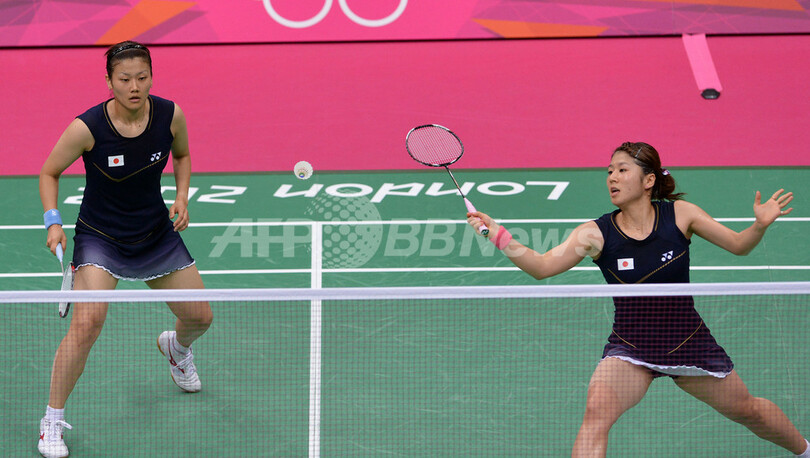 試合に臨む日本の藤井瑞希(右)と垣岩令佳(2012年8月4日撮影)。(c)AFP/ADEK BERRY