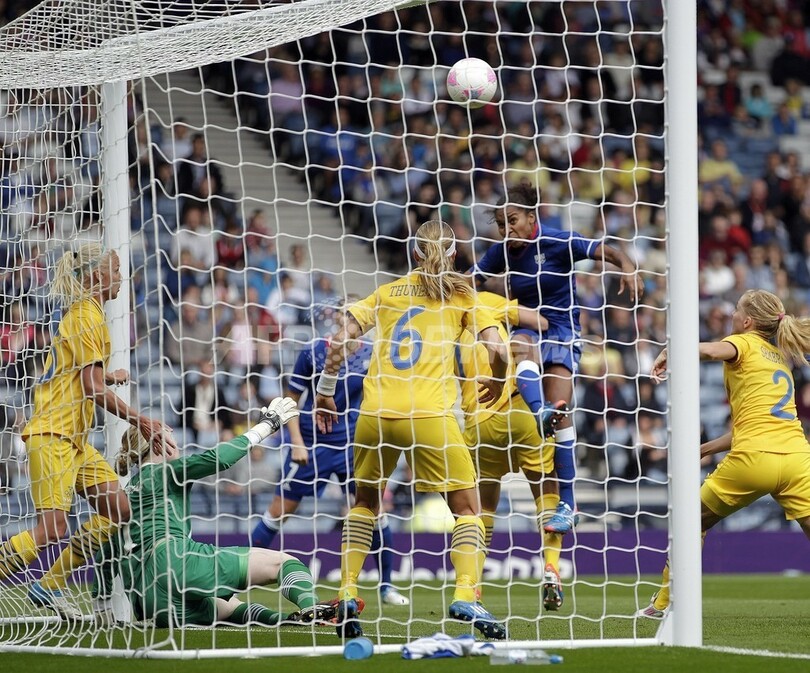 前半18分にコーナーキック(CK)からスウェーデンのニラ・フィッシャー(Nilla Fischer)に先制点を許したフランスは、同29分にローラ・ジョルジュ(Laura Georges)のゴールで同点に追いつくと、続く同39分にはウェンディ・ルナール(Wendie Renard)の得点で逆転した。