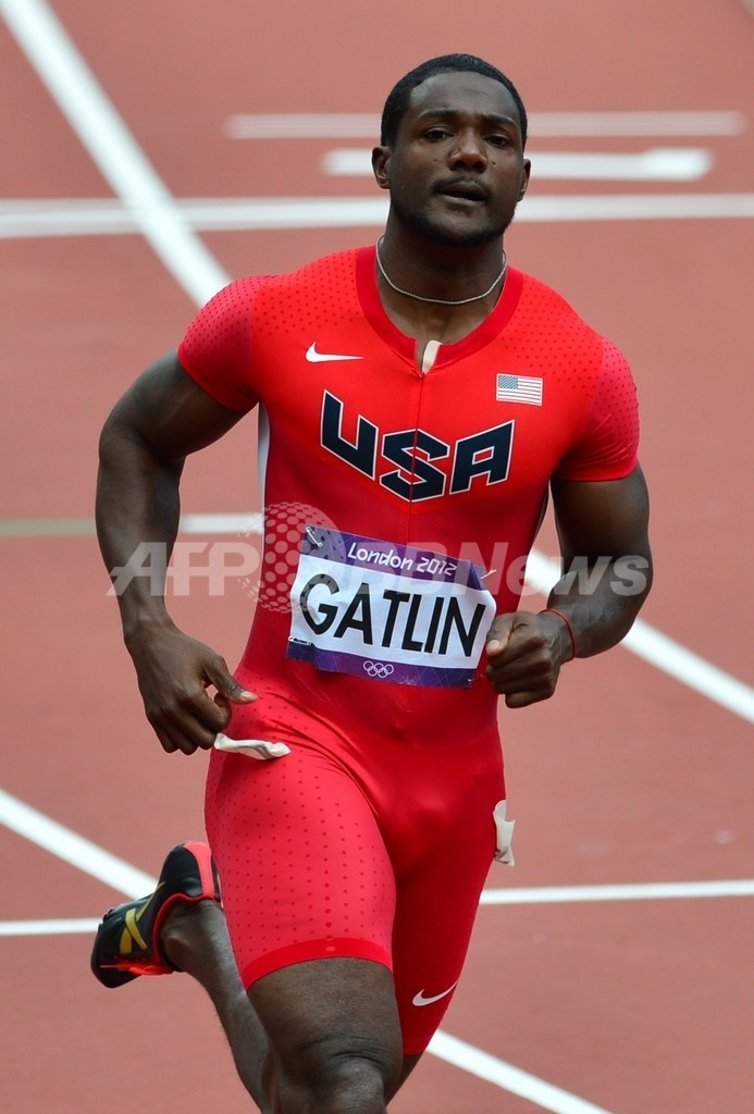 予選に臨む米国のジャスティン・ガトリン(2012年8月4日撮影)。(c)AFP/GABRIEL BOUYS