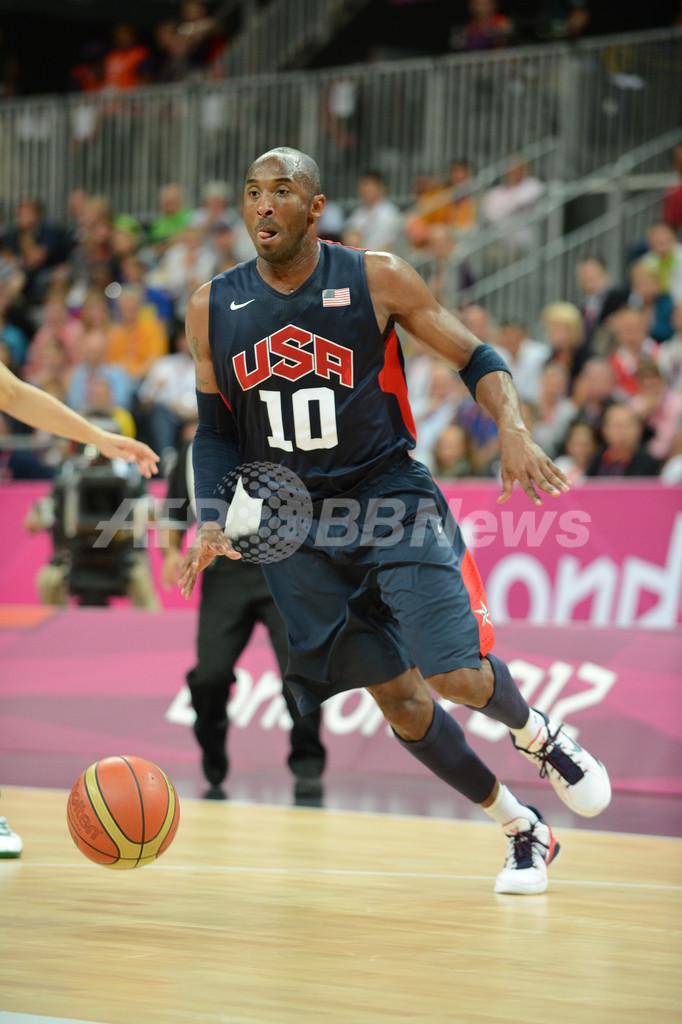 ドリブルでボールを運ぶ米国のコービー・ブライアント(Kobe Bryant、2012年8月4日撮影)。(c)AFP/Getty Images/NBAE/Garrett W. Ellwood