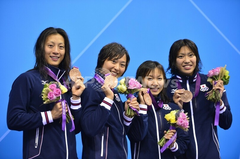 【8月5日 AFP】ロンドン五輪は4日、アクアティクス・センター(Aquatics Centre)で競泳女子4×100メートルメドレーリレー決勝が行われ、日本が3分55秒73で銅メダルを獲得した。