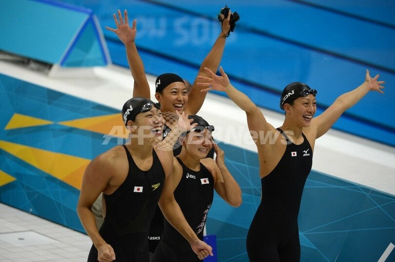 【8月5日 AFP】ロンドン五輪は4日、アクアティクス・センター(Aquatics Centre)で競泳女子4×100メートルメドレーリレー決勝が行われ、日本が3分55秒73で銅メダルを獲得した。