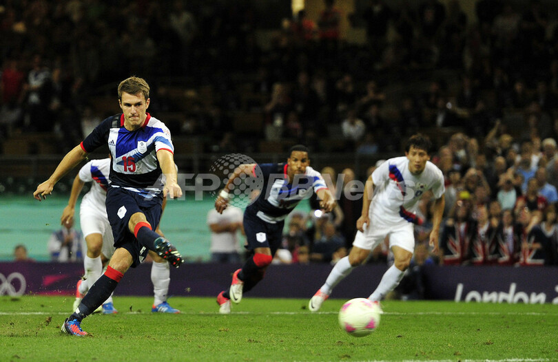 前半29分に池東源(Dong-Won Ji、チ・ドンウォン)のゴールで韓国に先制を許した英国は、同36分にウェールズ出身のアーロン・ラムジー(Aaron Ramsey)のPKで1-1の同点に追いついたものの、その後再び獲得したPKでラムジーのシュートは韓国のゴールキーパー(GK)鄭成龍(Sung Ryong Jung、チョン・ソンニョン)に阻まれ、勝ち越すことはできなかった。(c)AFP