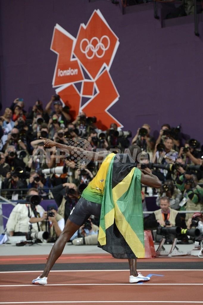 【8月6日 AFP】(記事更新、写真追加)ロンドン五輪は5日、オリンピックスタジアム(Olympic Stadium)で陸上男子100メートル決勝が行われ、ジャマイカのウサイン・ボルト(Usain Bolt)が9秒63の五輪新記録で2大会連続の金メダルを獲得した。