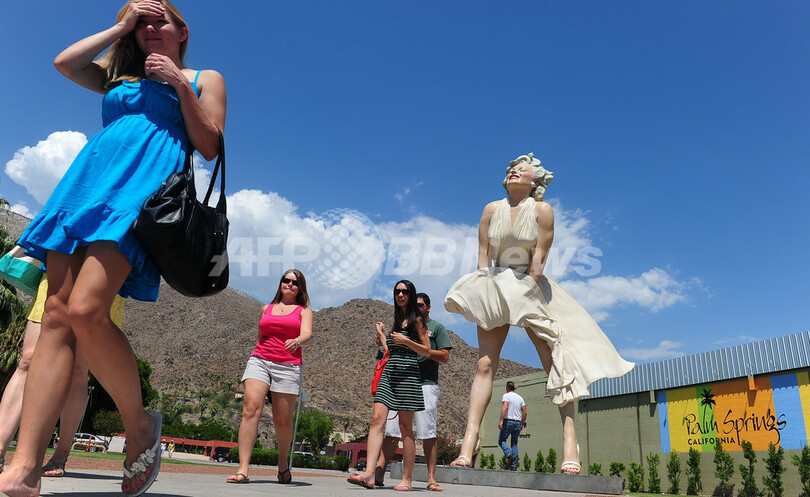 【8月5日 AFP】米女優マリリン・モンロー(Marilyn Monroe)の死から50年を翌日に控えた4日、米カリフォルニア州のパームスプリングズ(Palm Springs)では、出演作の名場面を再現した巨大な像「フォーエバー・マリリン(Forever Marilyn)」が注目スポットとなり、訪れた人々が写真撮影に興じていた。