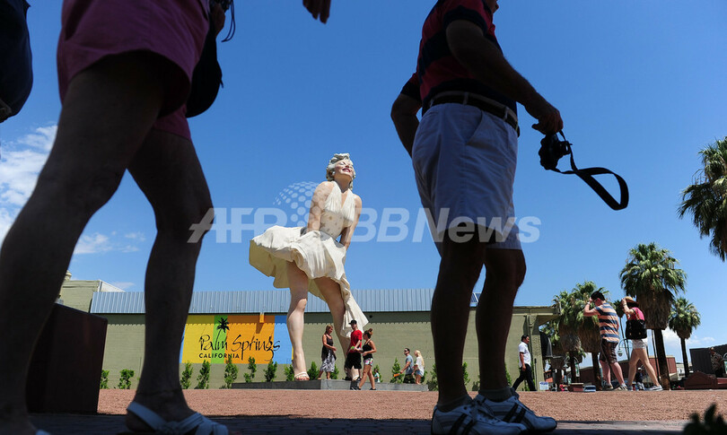 【8月5日 AFP】米女優マリリン・モンロー(Marilyn Monroe)の死から50年を翌日に控えた4日、米カリフォルニア州のパームスプリングズ(Palm Springs)では、出演作の名場面を再現した巨大な像「フォーエバー・マリリン(Forever Marilyn)」が注目スポットとなり、訪れた人々が写真撮影に興じていた。