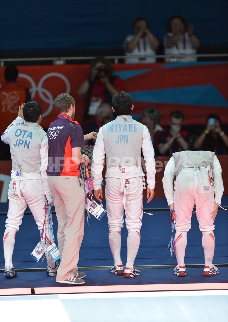 五輪 日本人選手 日本がフェンシング男子フルーレ団体で銀メダル獲得 2012年8月6日 6:54 発信地:ロンドン/英国 [ ヨーロッパ 英国 ] このニュースをシェア ‹ › ❮ 4/12 ❯ ロンドン五輪は5日、エクセル(ExCeL London)でフェンシングの男子フルーレ団体決勝が行われ、日本は39-45でイタリアに敗れ、銀メダルを獲得した。試合後に歓声に応える日本の選手(2012年8月5日撮影)。(c)AFP/ALBERTO PIZZOLI 画像作成中 ! 【8月6日 AFP】ロンドン五輪は5日、エクセル(ExCeL London)でフェンシングの男子フルーレ団体決勝が行われ、日本は39-45でイタリアに敗れ、銀メダルを獲得した。(c)AFP 五輪 一覧へ> メディア・報道関係・法人の方向け 写真・動画 購入のお問合せ>