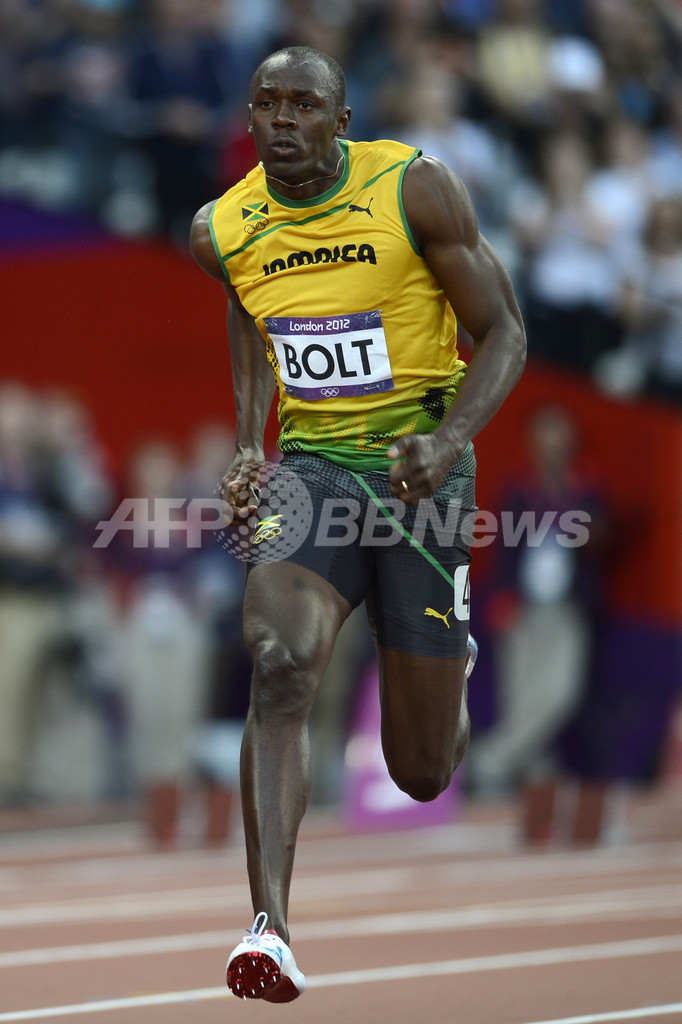 レースに臨むジャマイカのウサイン・ボルト(2012年8月5日撮影)。(c)AFP/ADRIAN DENNIS