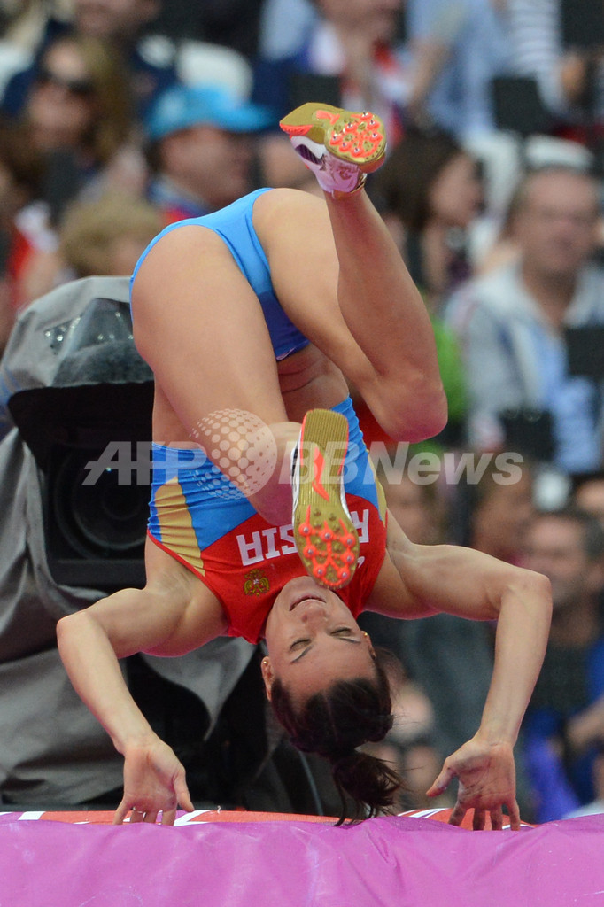 試技に臨むロシアのエレーナ・イシンバエワ(2012年8月6日撮影)。(c)AFP/JEWEL SAMAD