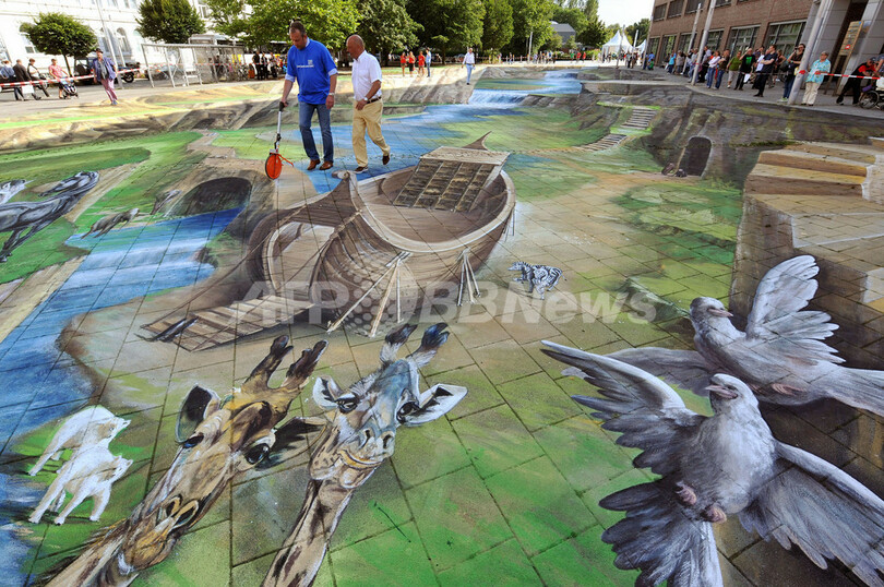 【8月6日 AFP】ドイツ・ウィルヘルムスハーフェン(Wilhelmshaven)の広場に4日、世界最大の3Dストリートアートが登場した。グレゴール・ウオジック(Gregor Wosik)氏ら4人のアーティストが手掛けた作品で、大きさは1570平方メートルほど。現在、ギネス世界記録(Guinness Book of World Records)に申請中だ。