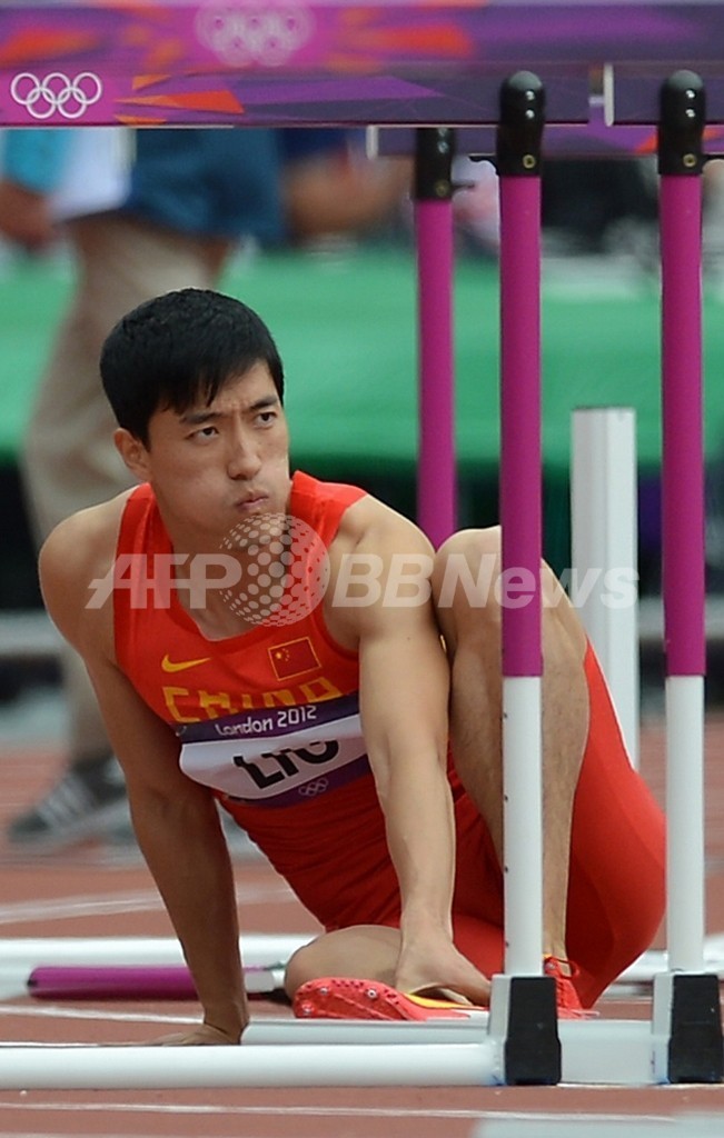 アテネ五輪の同種目で金メダルを獲得した劉翔は1台目のハードルに左足をぶつけ、転倒した。